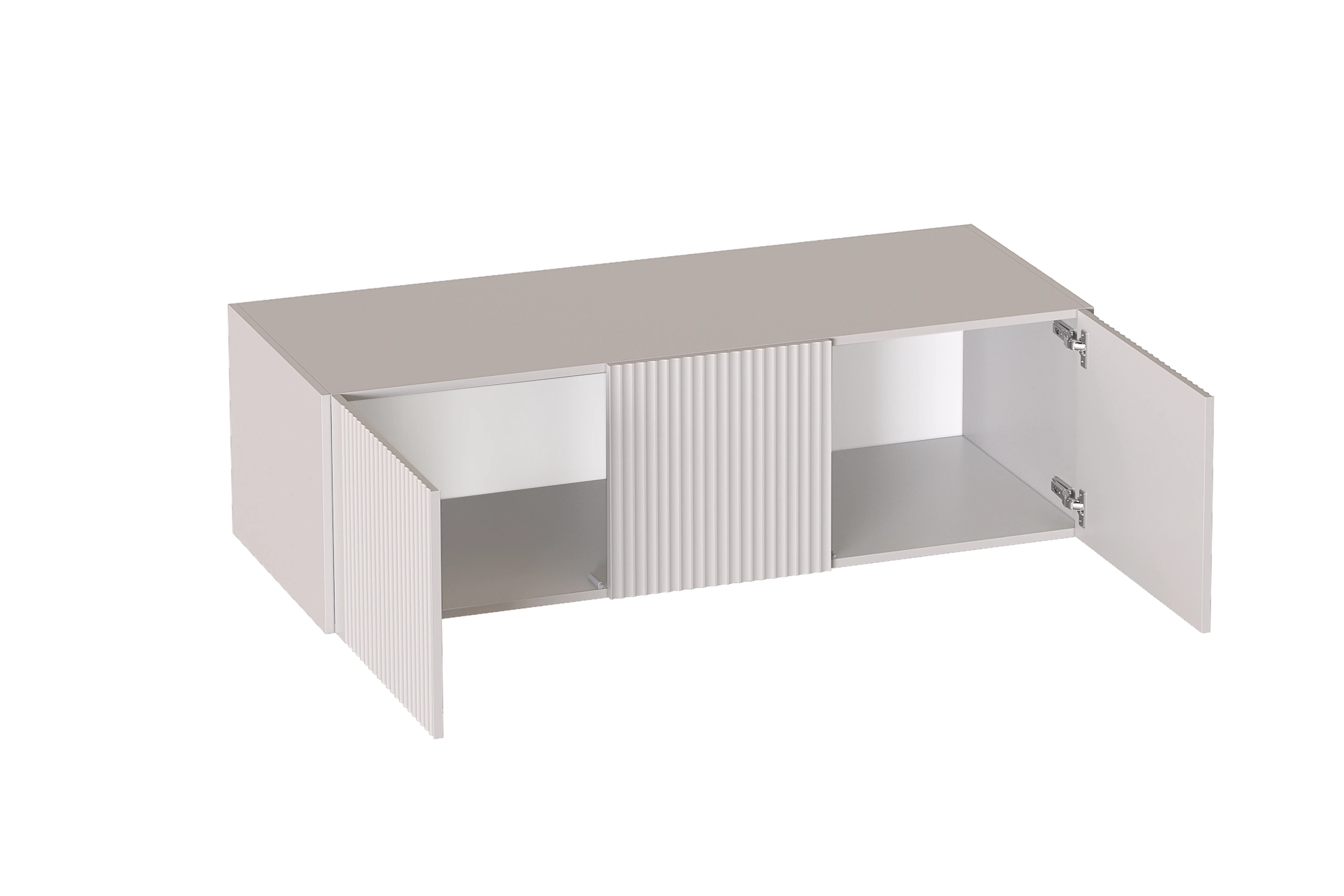 Для открывания дверей внутри антресоли устанавливаются толкатели Push-to-open, срабатывающие от нажатия на нижнюю часть двери.