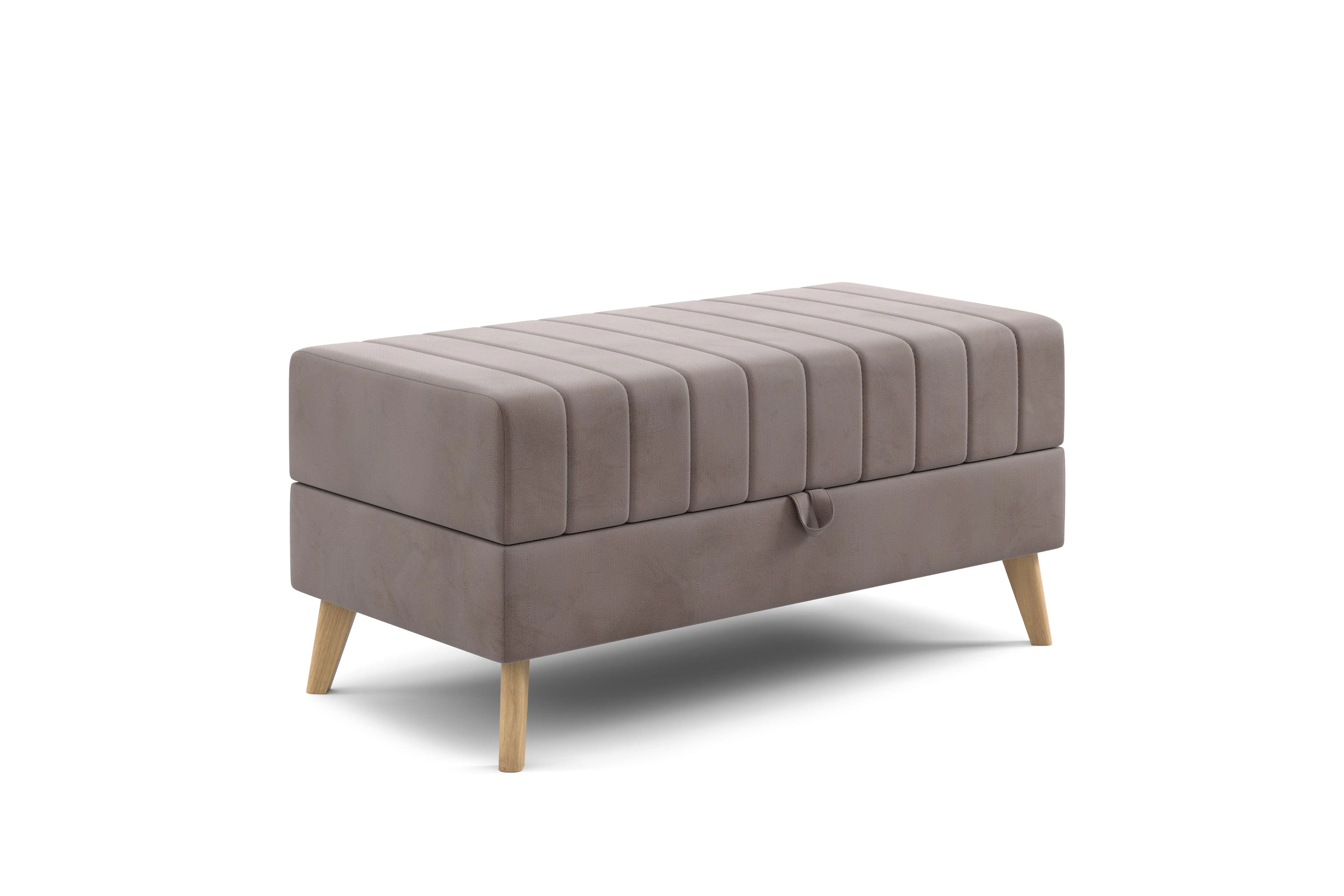 Декоративная отстрочка по высококачественному велюру добавляет приятный объем и украшает изделие. Опоры выполнены из массива берёзы, покрыты прозрачным лаком и имеют защитные войлочные наклейки. Банкетка хороша не только в гостиной, но и в гостиной, спальне, на кухне и в детской комнате. Максимальная нагрузка 110 кг.
