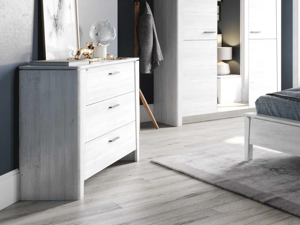Вместительность комода обеспечивает три выдвижных ящика, которые идеально подходят для хранения одежды, постельного белья и других личных вещей. Каждый ящик оборудован шариковыми направляющими, обеспечивающими плавный и бесшумный ход при использовании. Благодаря этому, вы сможете быстро и без лишних усилий найти нужную вещь и так же легко вернуть ящик на место.