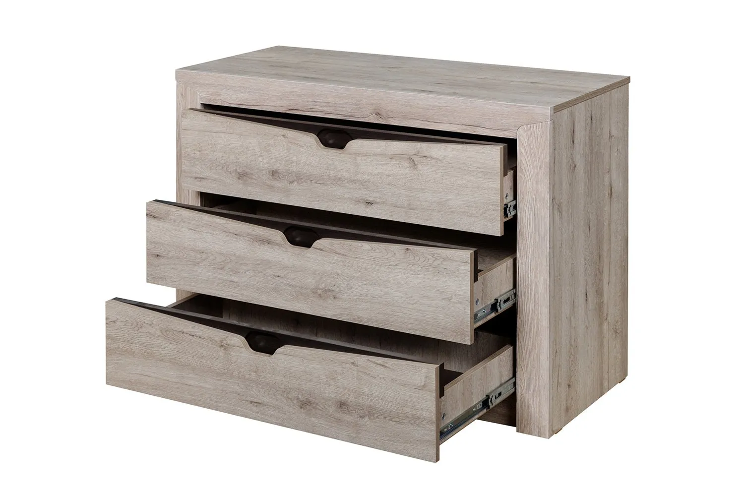 Комод "Соренто" идеально подойдёт для спальни и станет прекрасным дополнением к вашему интерьеру. Три вместительных ящика позволяют хранить множество вещей, таких как одежда, белье, аксессуары. В фасадах ящиков имеются декоративные вырезы, выполняющие функцию ручек.