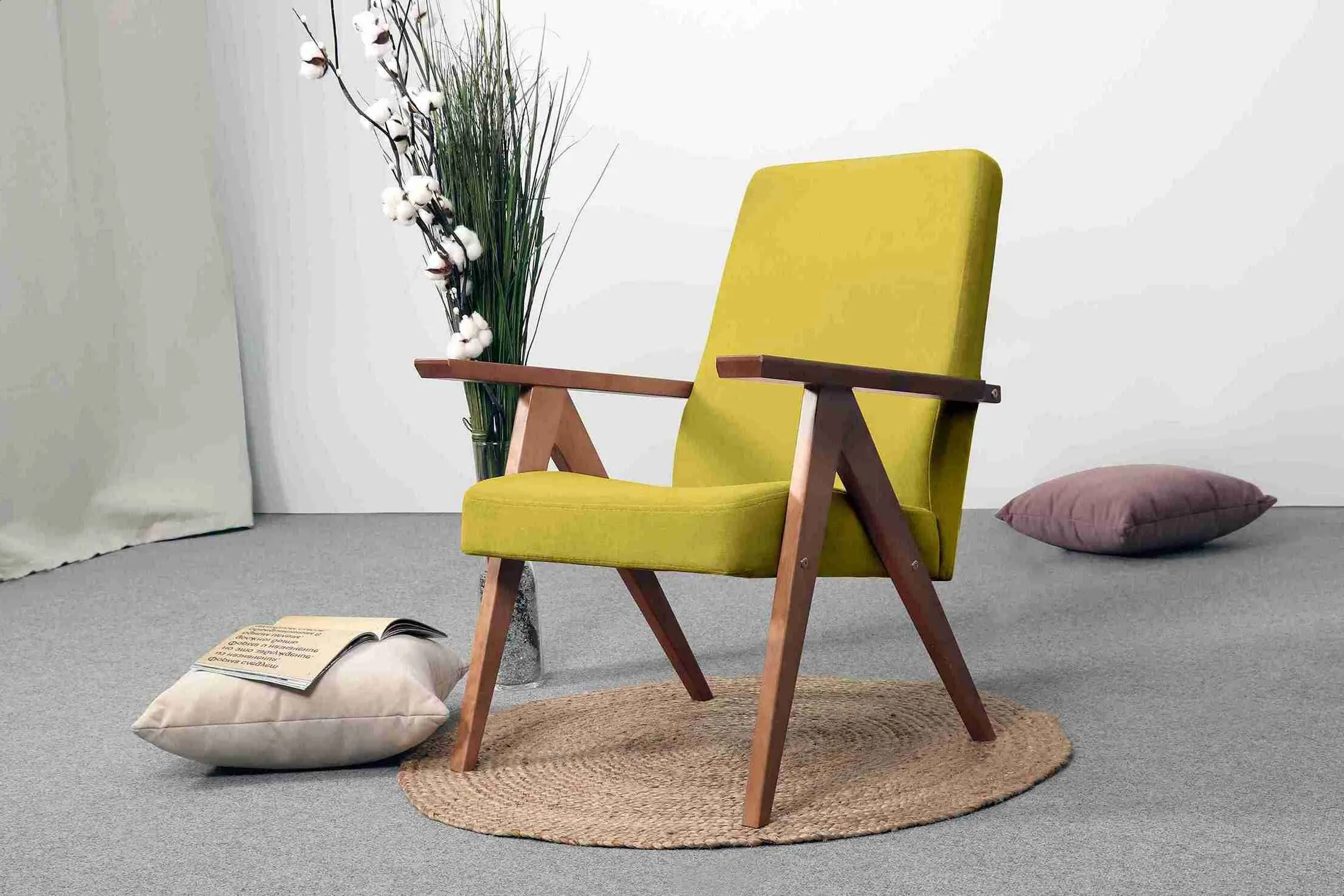 Кресло имеет простой и элегантный силуэт. Оно выполнено в уникальном ретро дизайне и доступно в нескольких цветовых вариантах, что позволяет выбрать наиболее подходящее для вашего дома.