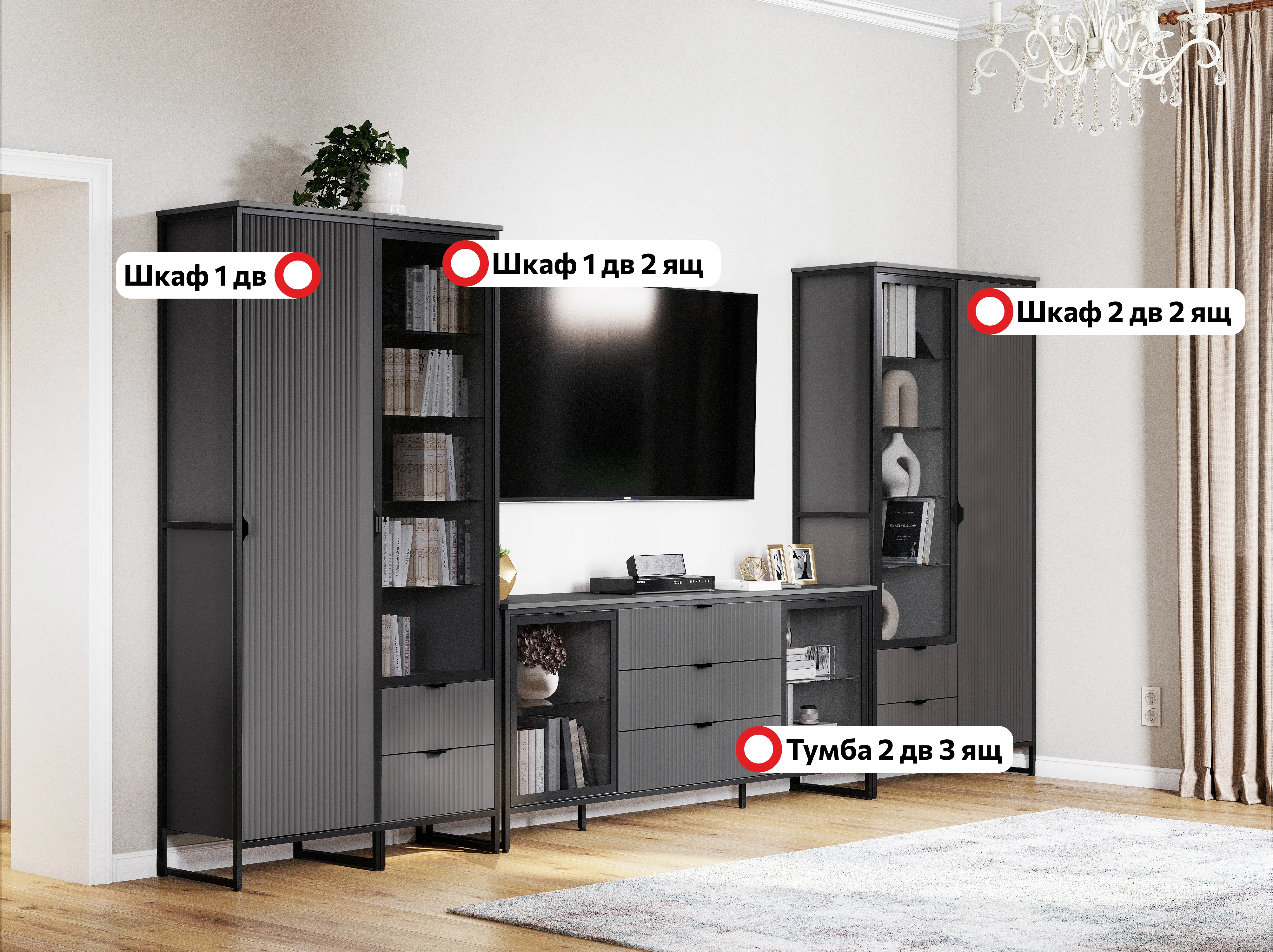 Гарнитур подходит как для просторных, так и для небольших гостиных, помогая эффективно использовать пространство и создавать уютное место для отдыха и сна.