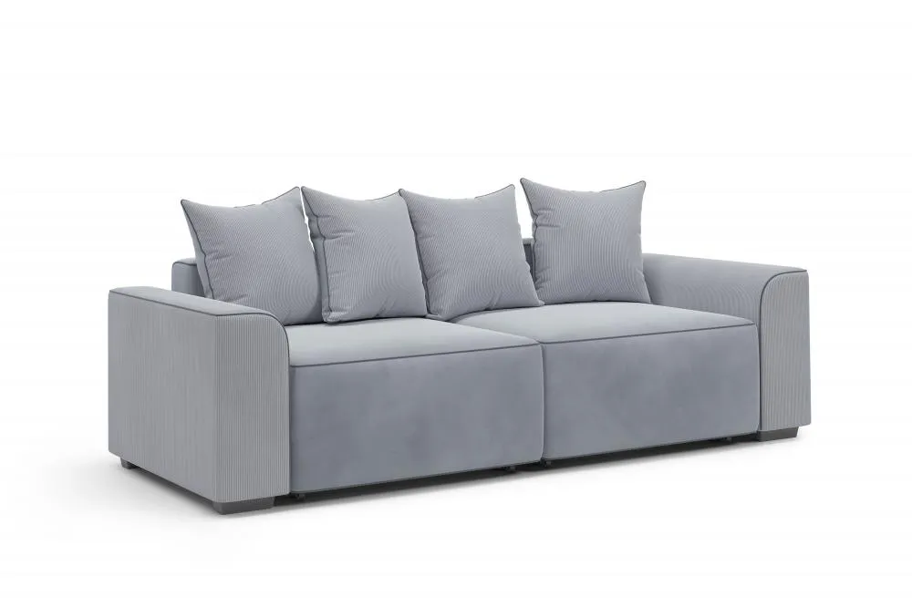 <virtues>Покупала в нестандартном цвете: пыльно-розовый. Диван очень нарядный. Независимый пружинный блок - очень удобен в посадке. Приобретала дополнительные подушки в том же цвете. Можно разложить одну часть и получится как угловой. Хорошая велюровая ткань выглядит дорого и тактильно очень приятная, немного играет цветом. Два бельевых ящика, вместительные. Диваном очень довольна.</virtues> <limitations>Нет</limitations>