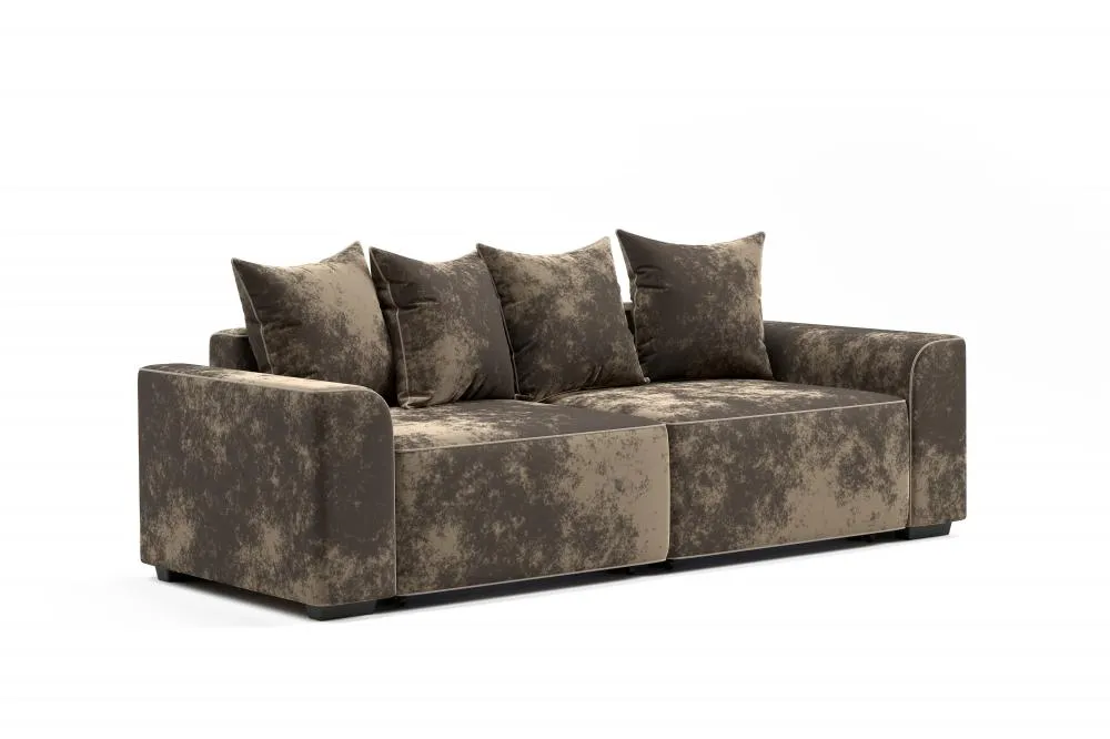 <virtues>Покупала в нестандартном цвете: пыльно-розовый. Диван очень нарядный. Независимый пружинный блок - очень удобен в посадке. Приобретала дополнительные подушки в том же цвете. Можно разложить одну часть и получится как угловой. Хорошая велюровая ткань выглядит дорого и тактильно очень приятная, немного играет цветом. Два бельевых ящика, вместительные. Диваном очень довольна.</virtues> <limitations>Нет</limitations>