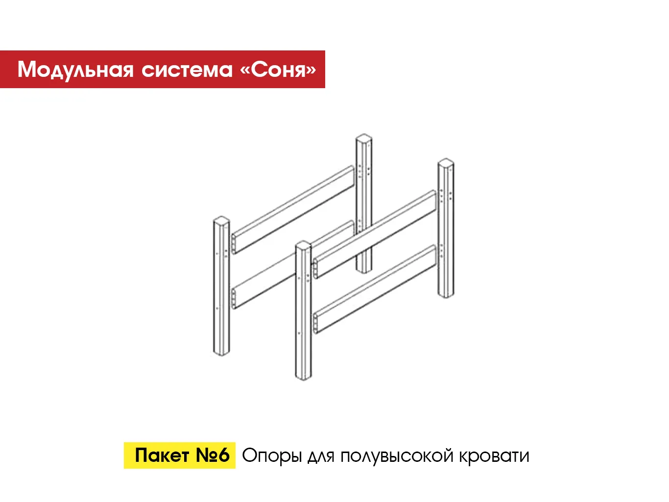 Пакет №6. Опоры для полувысокой детской кровати “Соня” представляют собой элементы, которые обеспечивают устойчивость и прочность кровати.