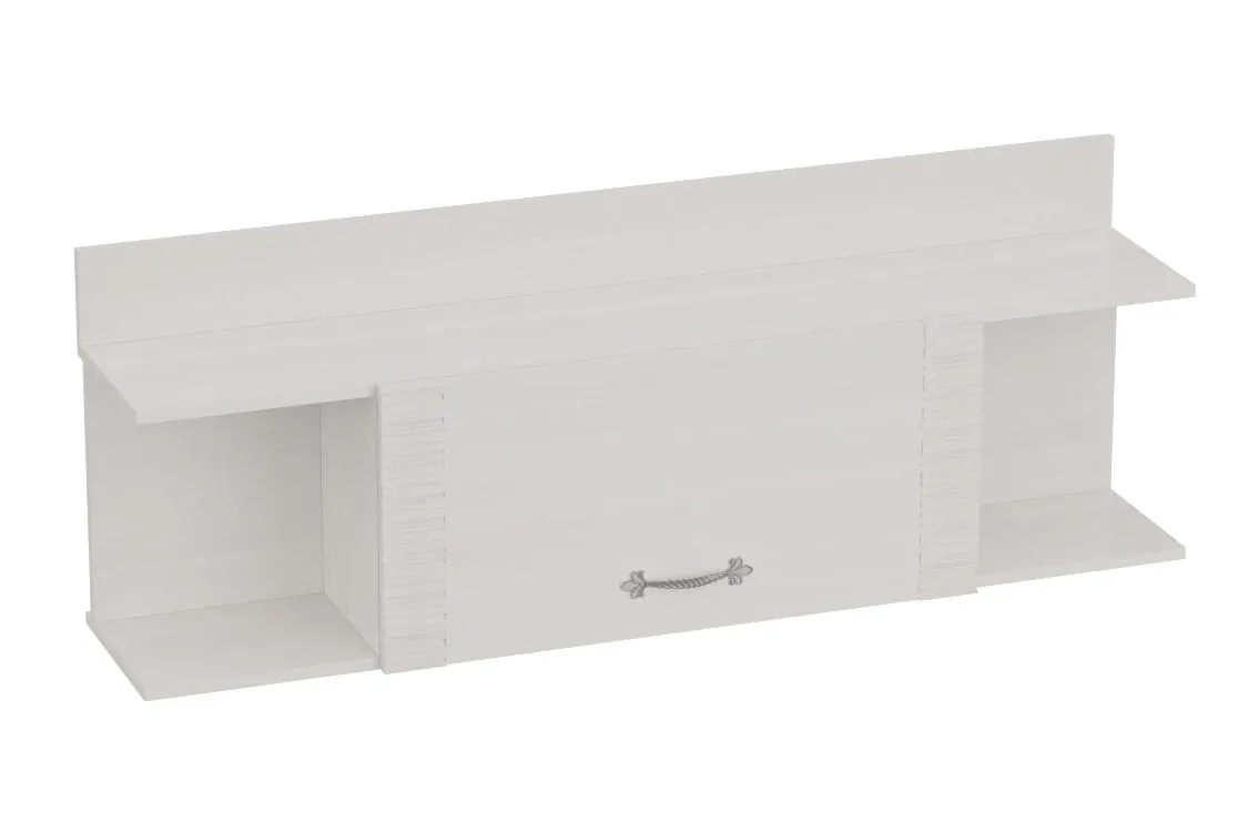 В полке имеются две боковые открытые ниши и центральная, закрытая дверцей. Дверца открывается вверх и удерживается в этом положении с помощью газовых кронштейнов.