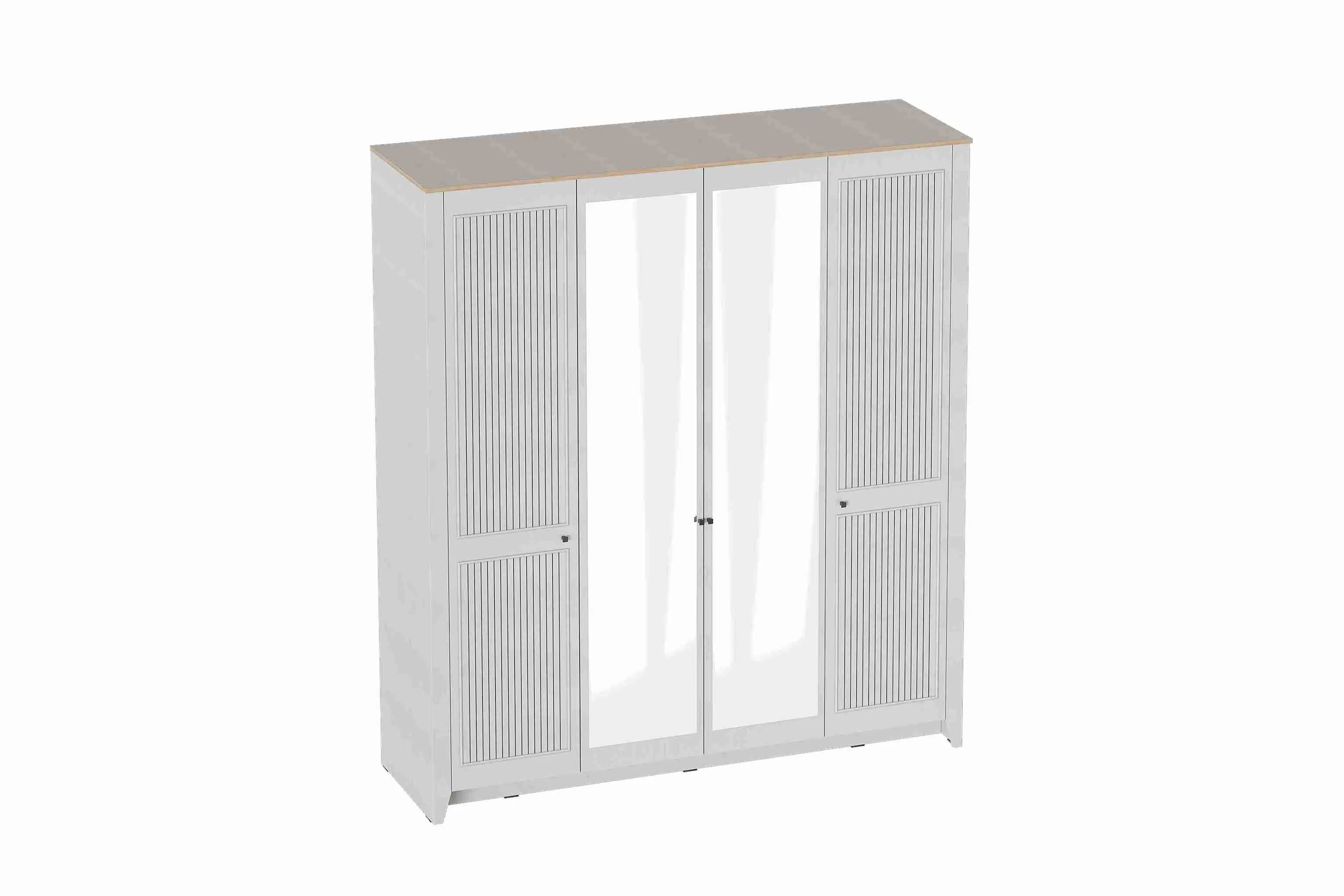 Шкаф 4 дверный Валенсия с зеркалом выполнен из (ЛДСП) в комбинации Дуб натуральный светлый / Персидский жемчуг.