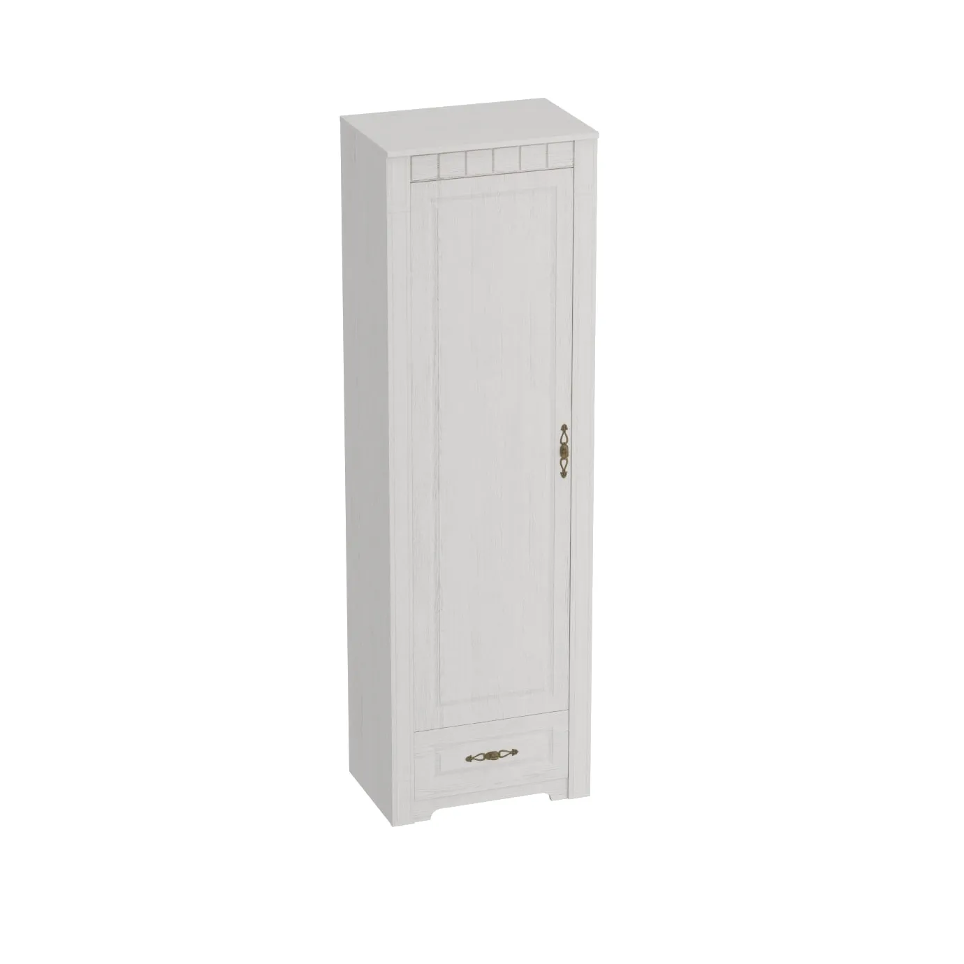В шкафу расположены распашная дверь и в нижней части ящик на шариковых направляющих глубиной 350 мм. Дверь монтируется как на правую, так и на левую стороны. За распашной дверью располагаются четыре съёмные полки.