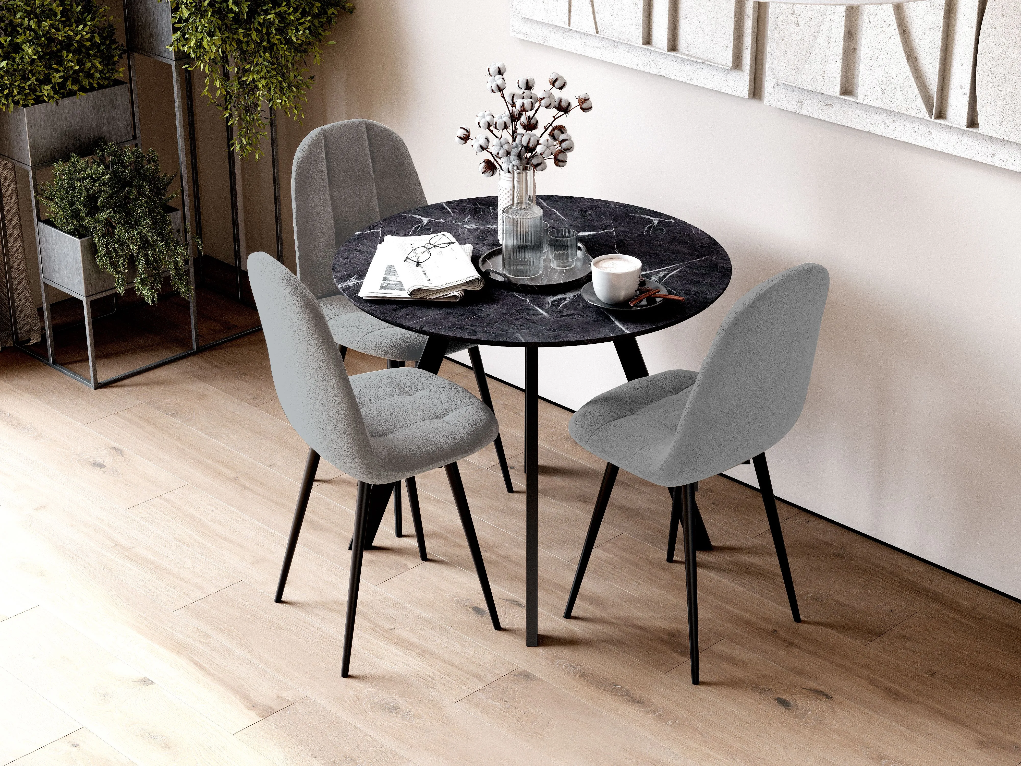 Обеденный стол “Вивальди 4” выполнен в классическом стиле в цвете "Мрамор Анкара". Круглая форма делает его идеальным для размещения в центре комнаты и обеспечивает комфорт для всех гостей. Опоры из профильной трубы прямоугольного сечения 50х25 см, покрытые порошковой краской, придают столу элегантность и утонченность.