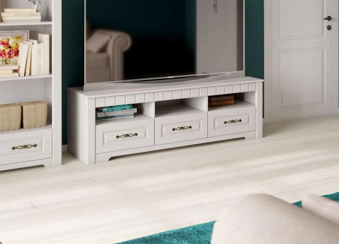 Тумба для гостиной из серии “Прованс” - это прекрасное решение для тех, кто хочет создать уютную и теплую атмосферу в своем доме. Она выполнена в стиле прованс, который характеризуется использованием натуральных материалов и светлых оттенков.