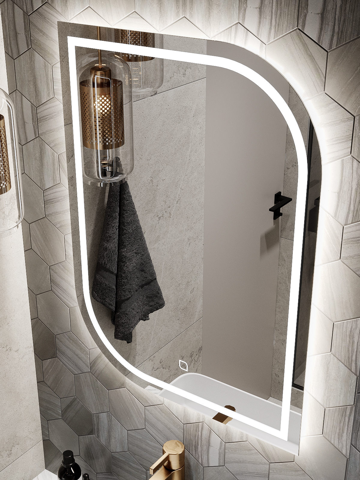 пескоструйная обработка в виде полосы шириной 15 мм, повторяющая контур зеркала